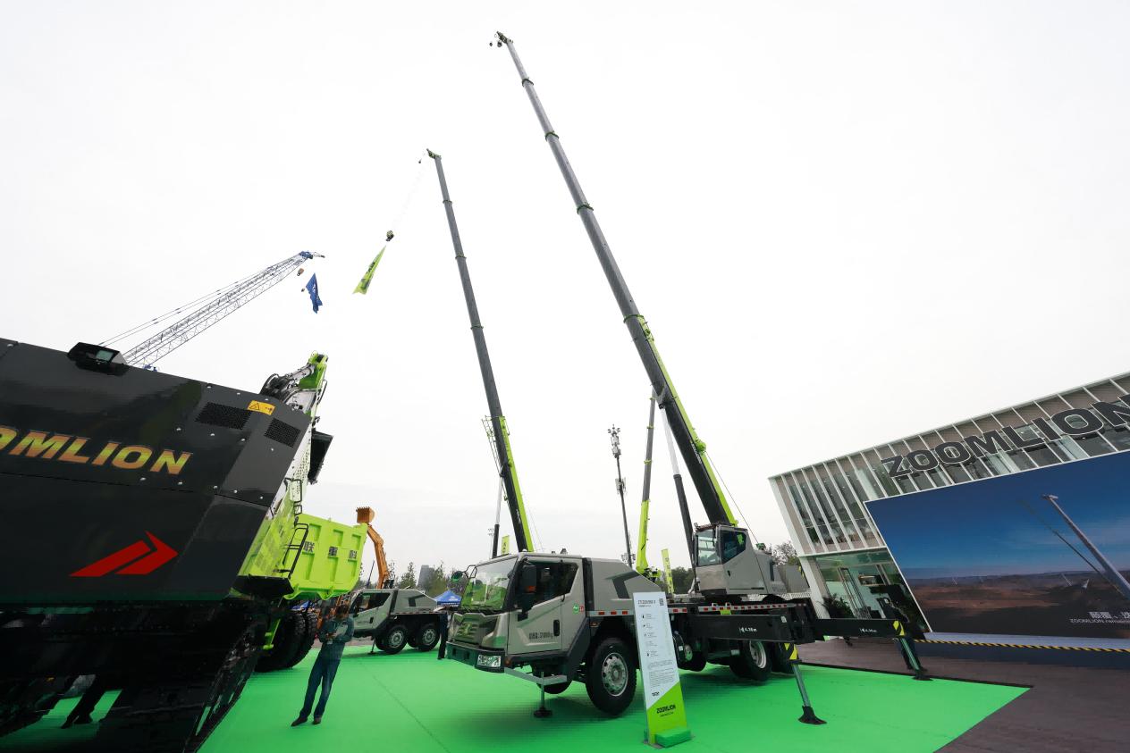 随车起重机ZLT3500V501则拥有超广作业幅度、超长伸臂高度、超高起重稳定性,高效灵活、性能强劲;该产品拥有20米极致臂长和8米支腿跨距,展示出极强的作业灵活性,搭载的双联液压系统,卷扬起升速度快而稳,复合动作一气呵成。此外,还有最大布料高度可达72.1米,行业最稳的73米混凝土泵车,以及操控精准、起重稳定的汽车起重机,这些明星产品成为展会现场的人气担当。