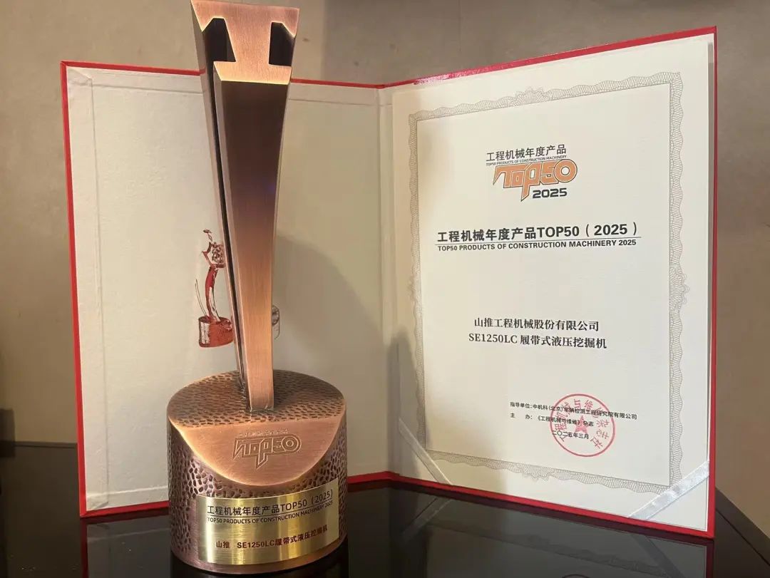 山推LE80-X5纯电装载机荣获“2025工程机械年度产品TOP50新能源应用实践金奖”。山推SE1250LC 履带式挖掘机获“2025工程机械年度产品TOP50奖”,充分彰显了山推在新能源和矿山领域的成熟技术与可靠实力。