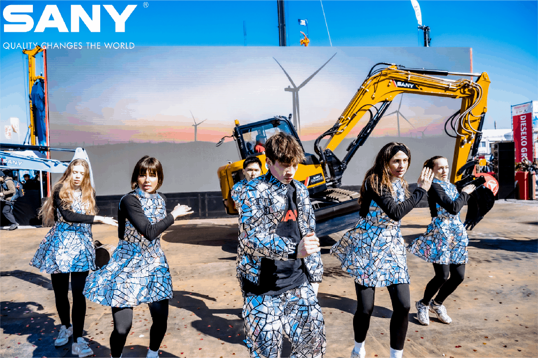 作为人气王者,三一设备表演区始终被围得水泄不通,两台SY19E电动微挖和一台SY80U挖掘机化身节奏大师和灵巧的“钢铁舞者”,随着动感电音精准摆动、旋转甩斗、翻转机械臂,与舞者默契配合,宛如未来机甲大片,嗨翻全场的同时,生动展现了三一装备的灵活操控性。