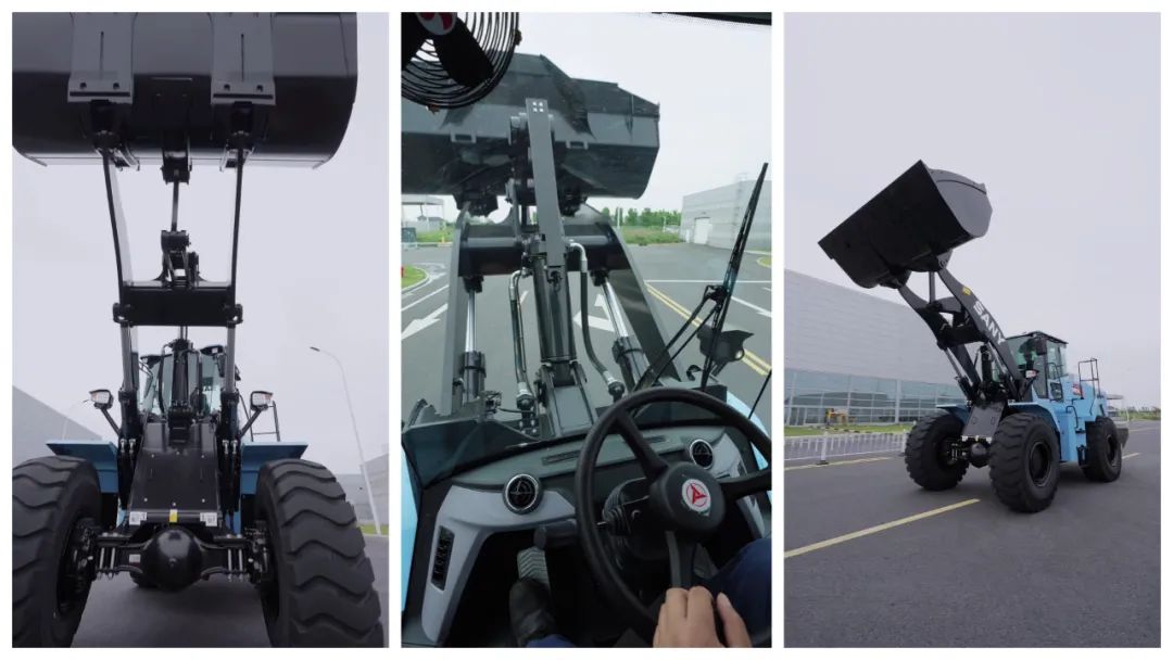 结构强化设计方面,采用了7吨级电动箱,精磨斜齿轮+多工况仿真,承载能力提升50%,噪音大幅降低;铲斗耐磨,斗体板加厚25%、刀板材料升级,插入阻力下降15%,耐磨性提升25%;配以框架门型车架,机器人焊接+11种工况仿真,抗疲劳寿命突破20000小时。
