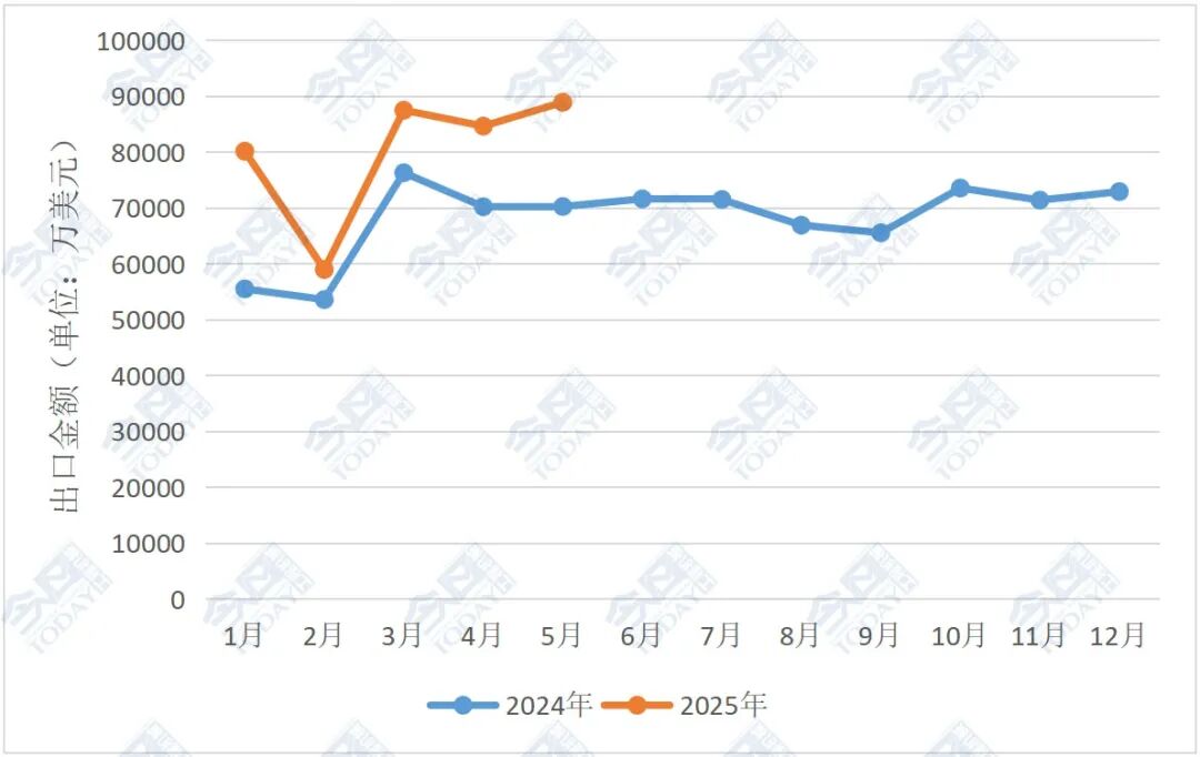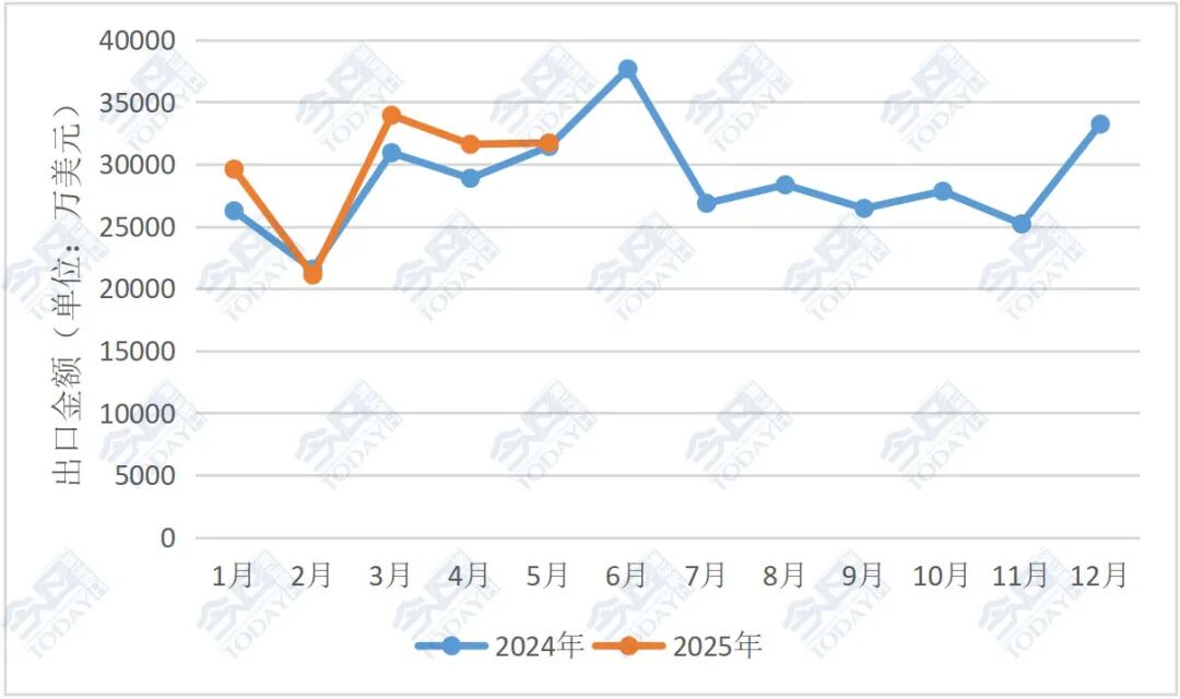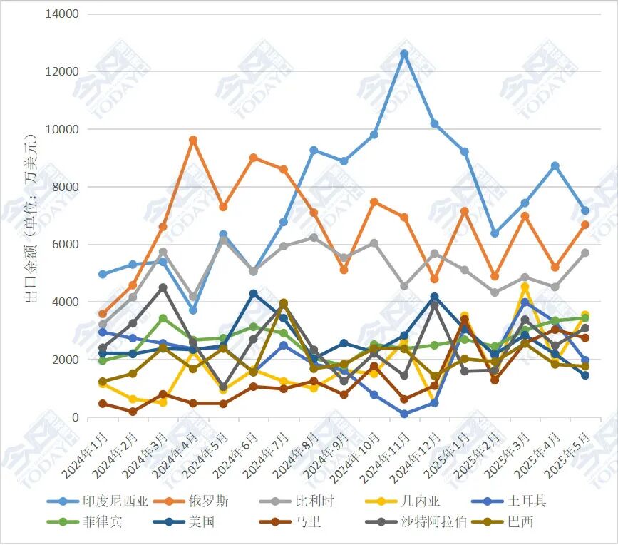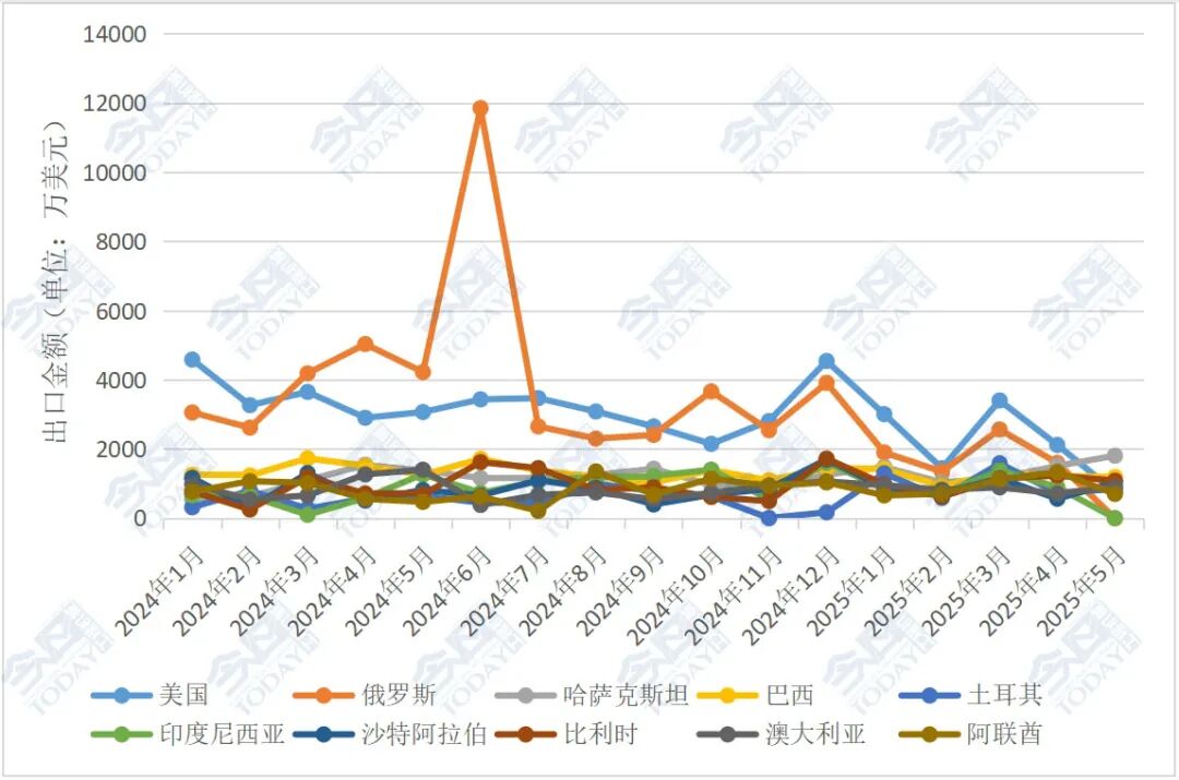 注:由于出口金额有波动情况,本文出口排名前十的国家以2025年1-5月的出口情况为准。