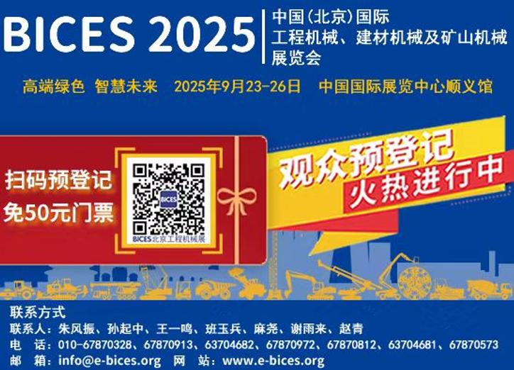 将于2025年9月23—26日在中国国际展览中心顺义馆举办的中国(北京)国际工程机械、建材机械及矿山机械展览会(BICES 2025),已进入倒计时16天。截至今日,将有1400余家国内外工程机械企业参展,多家行业头部企业和产业链供应链骨干企业大面积参展,参展企业最大面积为5000m²,有的安排了室内室外联展。一批新增展商将亮相展会现场。