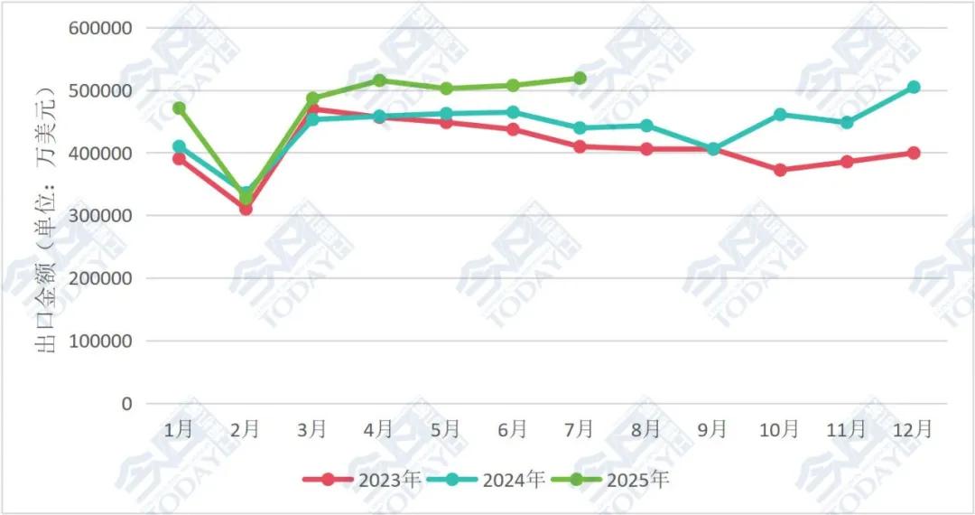 从环比来看,2025年7月我国挖掘机(含履带挖掘机和轮式挖掘机)出口总额为9.43亿美元,较6月的8.91亿美元增长5.85%。