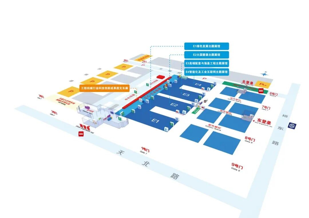 展馆特点:集远程遥控、无人施工、智能建造、数字孪生、大数据与AI于一体,并邀细分领域“专精特新”“单项冠军”企业同台。观众可互动体验前沿技术,也可与企业共探专业化、精细化、特色化的升级路径。从地理位置看,E4馆东侧紧邻北登录口,观众团体大巴、展商大巴下车即达,自驾车PA4停车场近在咫尺,直达展场;E4馆内西侧入口紧邻主办方办公区、VIP休息区,以及模拟体验区、宣传品领取处等,人流动线在此汇集,预计展会期间人流量将显著增长。