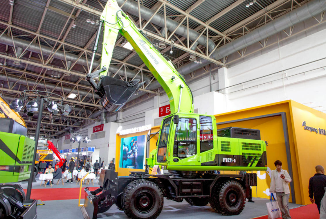 JYL608-D 轮胎式电动挖掘机。作业重量 8.5t,标准斗容 0.35m3 ,充电时间 1.5h,电池电量 141kW/h,续航时间6~8h。JYL608-D 轮胎式电动挖掘机是公司最新研制的纯电动挖掘机,整机采用大容量电池、三电机方案以及实时监控的热管理系统,使整车实现零排放,确保长续航和安全可靠。适用于城市建筑修建、园林绿化、市政施工及管道铺设等工程建设。