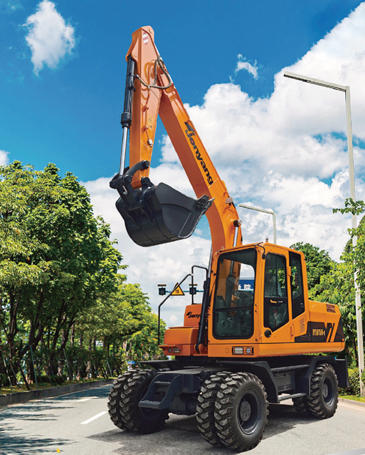 本次展会,詹阳重工携多款代表行业先进水平的明星产品重磅登场。其中包括JYL608-D轮胎式纯电动挖掘机,该机型凭借零排放、低噪声、高效率与长续航等显著优势,特别适合城市建筑、园林绿化、市政施工及管道铺设等对环境要求较高的施工场景,是绿色施工的理想选择。同时亮相的还有JYL615H-E与JYL621H-NE轮胎式液压挖掘机,这两款产品核心部件均选用国际知名品牌,融合先进的液压系统、高精度机械加工及机电一体化技术,整机性能稳定卓越,作业高效可靠,可广泛应用于水利电力、道路施工、机场港口、市政建设及管道工程等多种复杂工况。
