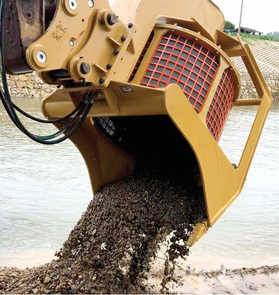 筛分斗以模块化设计与高效筛分性能,推动建筑垃圾资源化与矿山预处理等领域的低碳转型。其滚筒式防堵塞结构支持正反转运行与筛孔灵活调整,寿命较传统设备提升30%;内置高压喷淋系统更可实现水洗-筛分一体化,将砂石含泥量从5%降至0.5%,显著提升再生料品质。