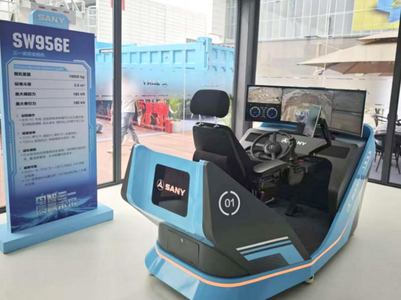 针对高危、极端或有高清洁度要求的工况,三一推出 SW956E 遥控装载机,其核心优势在于 100ms 超低延迟的远程操控系统——支持 5G 专网、自组网无缝切换,即便在信号 复杂的密闭环境,也能保持稳定连接,操作人员在安全区域即可完成作业,彻底解决传统 工况下“人员安全风险高、作业环境恶劣、作业卫生标准高”的痛点。SW956E 经过严苛验证:累计 1000 万 +h 工况测试,通过 200 项雷区规避设计、131 项 零部件仿真分析及 102 项台架试验,最终实现 0 关重件故障,可靠性堪称行业标杆。在云 南某搅拌站上料项目中,该机型通过远程操控实现全自动配比上料,计量精度 ±1%,配合 EVI 管理平台完成原料溯源, 助力客户获“昆明市绿色工厂”认证;某港口船底清舱作 业中,其效率较人工提升 40%。