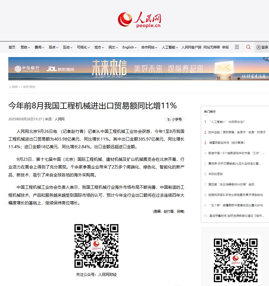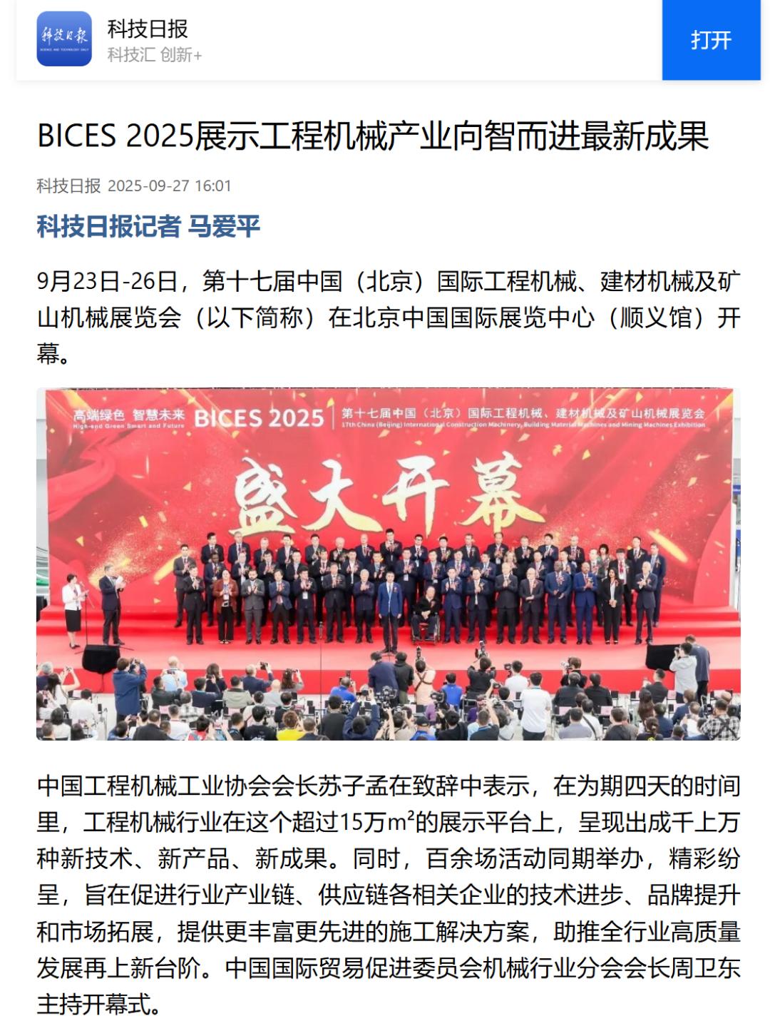 2025年9月23—26日,全球具有重大影响力的高品质工程机械国际展览盛会——第十七届中国(北京)国际工程机械、建材机械及矿山机械展览会(以下简称BICES 2025)在北京中国国际展览中心(顺义馆)盛大举行。本届展会以“高端绿色、智慧未来”为主题,1300多家国内外知名企业参展,总展览面积超15万m²,来自73个国家和地区的14.8万人次用户和观众入场参观、交流。