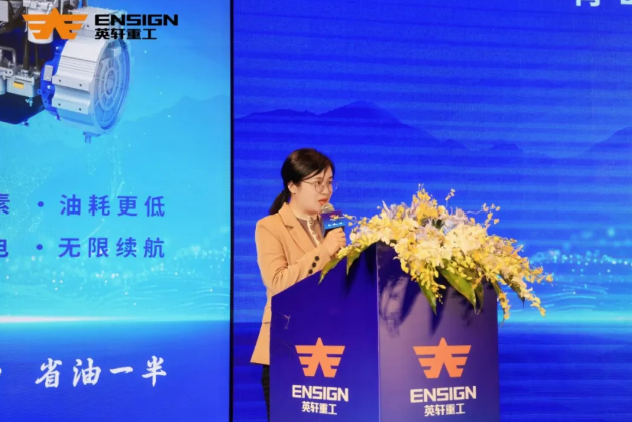 在品牌文化及产品介绍环节,英轩重工装载机营销公司副总经理段敬选与潍柴新能源研究院院长祝成祥均凸显“以客户需求为中心”的核心理念。英轩重工已构建起覆盖“纯电动+混合动力”双技术路线的新能源全系列产品布局,两者优势互补、全面匹配煤炭、铁粉、砂石、矿山、港口等多元化场景需求;潍柴动力则凭借CTB电池与增程器等核心技术,实现装备全生命周期碳排放降低,助力运营成本显著下降,全方位提升客户价值。
