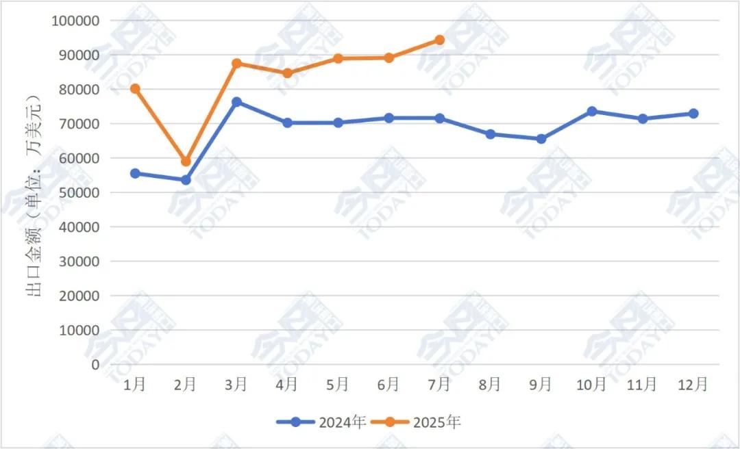 从环比来看,2025年7月我国挖掘机(含履带挖掘机和轮式挖掘机)出口总额为9.43亿美元,较6月的8.91亿美元增长5.85%。