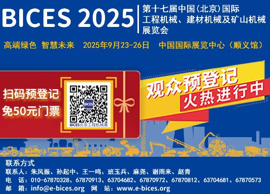 第十七届中国(北京)国际工程机械、建材机械及矿山机械展览会(以下简称BICES 2025)将于9月23—26日在中国国际展览中心顺义馆如期举办。